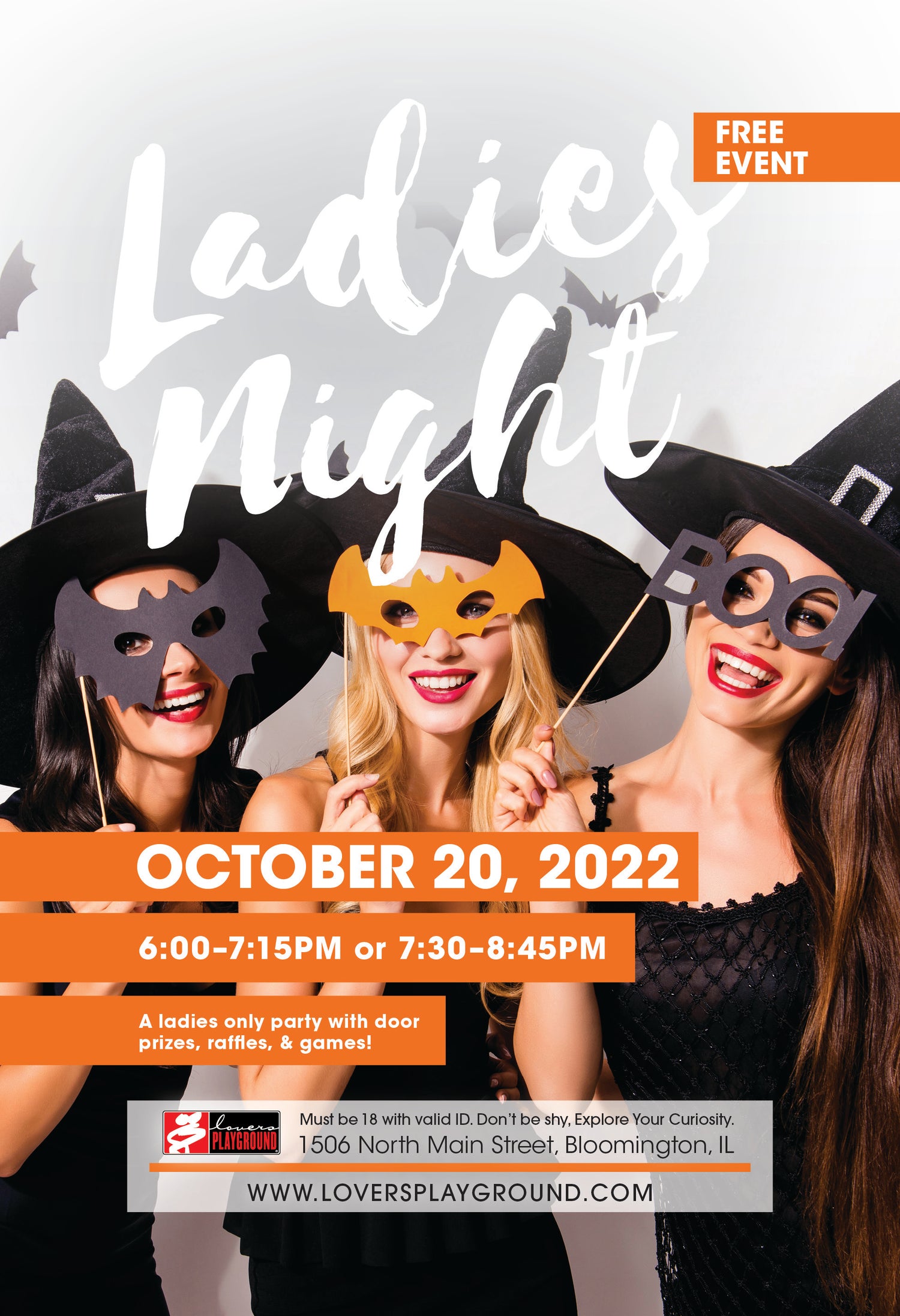 We're hosting a free Halloween edition Ladies Night! Our Ladies Nights are the best way to check out the store and Explore Your Curiosity about the items we carry. Join us for an fun evening of door prizes, raffles, games, and learning about the latest trending adult products. Everyone who attends will receive a goodie bag to take home.